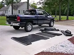A truck bed liner, or simply a bed liner, is a protector applied or installed into a truck. It can be used to protect the bed of the truck from impact damage and abrasive damage. There are two broad classifications of bed liners: "Drop-in" and "Spray-on/in". "Drop-in" bed liners are installed into a truck bed with limited preparation work and are removable for cleaning. Spray-in bed liners require specific preparation to allow the coating to adhere correctly into the truck bed. How well the coating adheres will determine how long it will last.