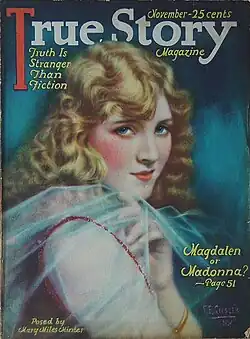 ![]() Actress Mary Miles Minter on True Story (November, 1921). "Magdalen or Madonna?" is deceptive, since page 51 is not about Mary Miles Minter. | |