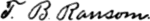 Ransom married Margaretta Morrison Greenfield in 1830. They had seven children: Dunbar Richard (1831–1897); Thomas Edwin Greenfield (1834–1864); Mary Rozella (1837–1843); George Richard (1839–1845); Frederick Eugene (1841–1918); Mary Rozella (named for a sister who predeceased her, born and died in 1843); and Catherine Harriet (b. 1846).[31]