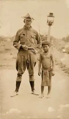 ![]() Hunt posing with one of his "Igorrotes", taken circa 1904. | |