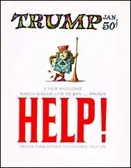 Trump was a glossy magazine of satire and humor, mostly in the forms of comics features and short stories. It was edited by Harvey Kurtzman and published by Hugh Hefner, with only two issues produced in 1957. The first issue appeared in January 1957[1] and the second came out in March. The magazine's mascot was a trumpeter herald in the style of John Tenniel's Alice in Wonderland illustrations. Kurtzman began work on Trump shortly after leaving Mad following a break with its publisher William M. Gaines. Mad also lost two of its top cartoonists in the dispute's aftermath, when Will Elder and Jack Davis chose to follow Kurtzman. Wally Wood was also recruited for the Trump team in the form of an either-or option, but he chose to stay at Mad. Other notable artists, including Al Jaffee and Arnold Roth, appeared in Trump.