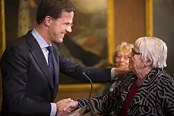 ![]() Truus Menger-Oversteegen being awarded the Mobilisation War Cross | |