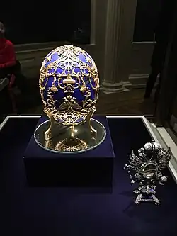 The Tsarevich egg, also known as the Czarevich egg, is a Fabergé egg, one of a series of jewelled eggs made under the supervision of Peter Carl Fabergé. It was created in 1912 for Empress Alexandra Fyodorovna as a tribute by Fabergé to her son the Tsarevich Alexei (Alexei). The egg is currently in the Virginia Museum of Fine Arts in Richmond, Virginia, US.[1]
