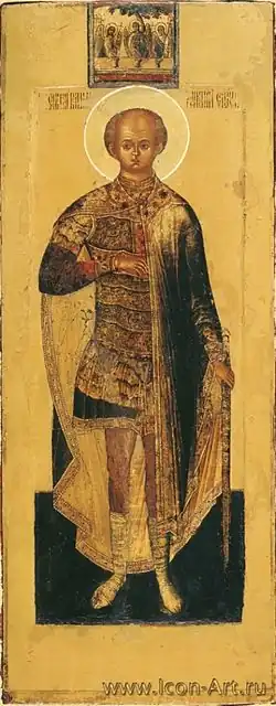 Dmitry was born on 1 November [O.S. 22 October] 1648, the day of the festival of the Mother of God of Kazan icon.[1] He was the first son of Alexis of Russia by his first wife Maria Miloslavskaya, who married the tsar on 16 January (O.S.) the same year.[1] His baptism took place on 29 October, with the officiating priest being Patriarch Joseph.[1] The godmother of the tsarevich was Tsarevna Irina Mikhailovna and the godfather was archimandrite Adrian of the Trinity Lavra of St. Sergius.[1]