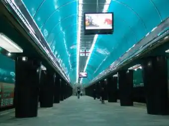 Tsereteli (Georgian: წერეთელი) is a station located on the Saburtalo Line of Tbilisi Metro, between the stations Technical University and terminus Station Square-2. It opened in 1979 as part of the original 5 stations of the Saburtalo Line. It is named after the great Georgian writer Akaki Tsereteli, on whose named avenue the station is located. Alongside the terminus and transfer station of Station Square, it is one of the stations on the line not located within Saburtalo and is located in the Didube district.