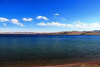 Tso Ngön (Tibetan: མཚོ་སྔོན, Wylie: mtsho sngon; Chinese: 错鄂; pinyin: Cuò È)is a plateau lake in Xainza County, Tibet Autonomous Region, southwest of China. The lake is part of the Siling Lake drainage system. The shoreline is deeply indented by bays, and the lake is dotted by many islands. It is 28.5 km long and 16.7 km wide and has an area of 269 square km.[1]