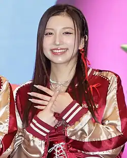 Aritomo has a younger brother.[22] Her studies at university included Korean and English as foreign languages.[23] She has mentioned Red Velvet and Perfume as her favorite artists and has attended their concerts.[24][13] She has described herself as a "sexy older sister" character.[25][26][27][28]