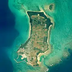 Tsuken Island (津堅島, Tsuken-jima; Okinawan: Biti) is an island in the Pacific Ocean in Uruma, Okinawa Prefecture, Japan. The island is southernmost of the Yokatsu Islands, and is located 3.8 kilometres (2.4 mi) south south-east of the Katsuren Peninsula off Okinawa Island at the entrance of Nakagusuku Bay. Tsuken covers 1.88 square kilometres (0.73 sq mi) and has a population of 487 residents.[1][2][3]