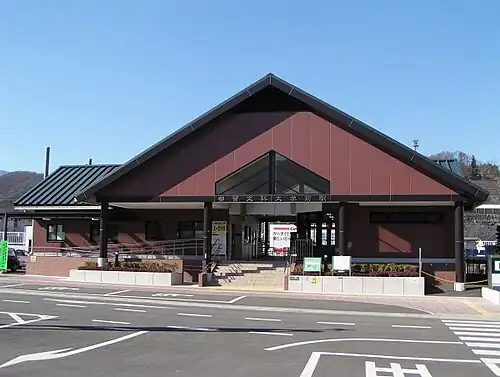 The station is staffed and consists of a single side platform serving a single bidirectional track, with the station building located on the south side of the track.[1] It has a waiting room and toilet facilities.[1]