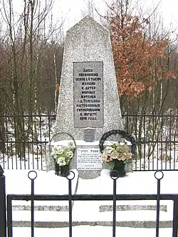 On August 7, 1941, SS troops and police forcibly gathered the Jews into barracks, beating and mocking them. The younger and stronger Jews were made to dig trenches, which would serve as mass graves. The Jews were then marched to the Grechishche tract, where they were systematically executed. The victims were forced into the trenches and shot, with children being shot at the edge and pushed into the pits.[4][1]