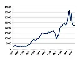 Passenger numbers reached a peak during the Second World War, as shown in the graph and table below.