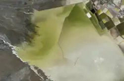 Tuanjie's position at the south end of the playa means that its waters are relatively less influenced by the concentrated mineral springs along the playa's northern boundary.[5] Nonetheless, the lake's brine is at or near saturation with calcite, halite, polyhalite, kieserite, and (importantly) carnallite,[6] which is processed to produce potash for potassium-rich fertilizers and other uses.