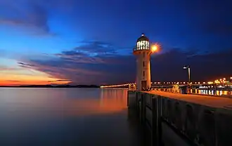 Tuas Mega Port began operations in 2021, and will be completed by 2040 to house all of PSA International current assets and operations, PSA will give up its city terminals by 2027 and Pasir Panjang Terminal by 2040.[5][6] Tanjong Pagar terminal had ceased operations in October 2017 marking the beginning of the end of an era of port operation in the area which dates back to the modern founding of Singapore in 1819.[7] The only lamp post in Singapore on which stickers may be pasted, Tuas Lamp Post 1, is located on land reclaimed for the Tuas Mega Port.[8][9]