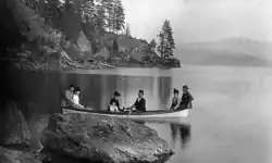 The area that now comprises Tubbs Hill was once in the 4,000,000-acre (16,000 km2) territory of the Coeur d'Alene Tribe of indians.[5] After the incorporation of the City of Coeur d'Alene, land salesmen and German immigrant Tony A. Tubbs platted what was called the “Tubbs Hill Addition to the City of Coeur d'Alene” in 1884 on an over 130-acre (0.53 km2) rectangular plot of land where he proposed several blocks.[11] Tubbs became a prominent and well liked figure in the community, building the first hotel in the city, the Hotel d'Landing and becoming the first Justice of the Peace in the city.[5] Tubbs' development had linear streets, seemingly giving no consideration for the steep hillside grade.[12] A popular sales tactic for undeveloped land employed during this time period involved pitching the plots as if it was flat, shovel-ready land that is prime for construction to unfamiliar settlers who may be buying the property sight unseen.[11] The land that made up Tubbs Hill however was far from an ideal plot on which to build upon; the development sits on an almost solid rock with a height from the hills base to its peak being over 375 feet (114 m) and on a grade that varies between 8 degrees and 30 degrees.