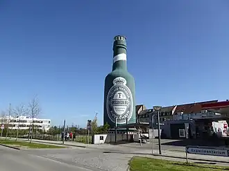 The Tuborg Bottle (Danish: Tuborgflasken) is a 26 metres tall landmark shaped as a Tuborg bottle located close to Tuborg's former brewery site, now Tuborg Havn, Hellerup, in the northern suburbs of Copenhagen, Denmark.