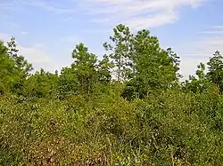 Tuckahoe Bay is located in Horry County, South Carolina, in the Nixonville Quadrangle of South Carolina.[1] It is a Carolina bay, which is similar to a swamp with an oval shape. The bay is next to the Covington Lake and Waterford Plantation neighborhoods in Carolina Forest, a suburb of Myrtle Beach, South Carolina. It is noted that the flora in the bay is noticeably shorter than that of the surrounding area. This is due to the difference in soil type. Tuckahoe Bay has a Jo soil type, also known as a Johnston Loam.
