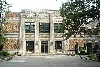 Tuckahoe High School is a historic high school located in Eastchester, New York. It was built in 1930–31, and is a three-story brick building with Aztec-inspired cast stone trim in the Art Deco style. The front facade is composed of a three-story, nine bay central pavilion, deeply recessed two-story, five bay connecting wings, and projecting, identical, two-story, five bay end pavilions.[4]