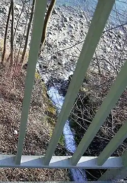 Although the river is only 1.5 kilometres (0.93 mi) long, it has an interesting feature: At one point its waters drop through a height of 12 metres (39 ft) forming the Weissbach Fall, which is audible and visible from the nearby street. A small hotel has built a power plant there and uses the electricity generated for domestic requirements. Around the basin are canals, which divert the water in case of emergency.