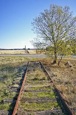 Following heavy rains causing numerous wash-aways services were suspended, although the line is not officially closed (which would require an Act of Parliament). Passenger services on the line in the final years comprised CPH railmotors.[3] The line branched from the Main South line at Wagga Wagga and passed through Tarcutta to the township of Tumbarumba. It opened in stages from 1917 to 1921 and was essentially closed in 1987.[4] Passenger trains ceased operation in 1974 after significant flooding saw much of the line abandoned. In 2001, a large grass fire started by a passing Northbound semi-trailer destroyed the disused Tarcutta railway station before it could be restored by a local historical group.[5] All other stations on the line have been demolished with the exception of Ladysmith (which is maintained by the Ladysmith Tourist Railway Inc. historical group)[6] and Borambola. Although several sections of rail have been removed (albeit without the approval of NSW Railways), much of the line still exists. In 2020 the disused 22 km section Tumbarumba–Rosewood was graded, surfaced and sealed by the NSW government and Snowy Valleys Council as a pilot "rail trail" for recreational use by walkers, joggers and cyclists; official opening 3 April 2020.[7]