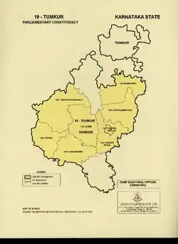 | Assembly constituencies | Chiknayakanhalli Tiptur Turuvekere Tumkur City Tumkur Rural Koratagere Gubbi Madhugiri |