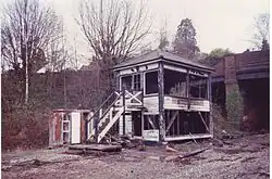 Following closure of the station, the main building was converted into a Beefeater restaurant named "The Old West Station", before being purchased by Herald Inns and Bars which operate it under the same name as a pub-cum-restaurant. It is now a Smith & Western. The building was Grade II listed on 27 March 1986.[24] The former goods yard and stabling sidings are lost under a Sainsbury's supermarket and a Homebase, and the trackbed was made into a car park and the frontage to the supermarket. An agreed corridor was left alongside Linden Park Road to enable any reinstated line to run through the site and a formal agreement was concluded between Tunbridge Wells Borough Council and Lord Sainsbury whereby the company agreed that, if required, they will remove at their own cost any buildings obstructing the path of the railway.[4] In the mid-1990s, a toilet block was constructed on the corridor, but this could be demolished in accordance with the terms of the agreement.[25]