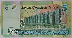 5 dinars | 143 × 70 mm | Green | Slaheddine el Amami | Roman aqueducts in Zaghouan | 2022 |