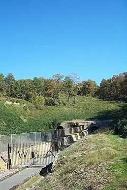 | The cut stone northwest face of the W&A tunnel, now preserved as a walking trail. | |