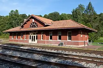 Tunnelton station is a historic railway station located at Tunnelton, Preston County, West Virginia. It was built in 1912–1913, by the Baltimore and Ohio Railroad Company. It is a rectangular, one-story brick structure. The exterior walls are constructed of brick, stone and mortar, with ornate wood soffit, extended wood fascia, and Spanish style ceramic roof tile, topped with large tile caps. Passenger service ceased in 1968, and in 1994, it was purchased from CSX by the Tunnelton Historical Society.[2]