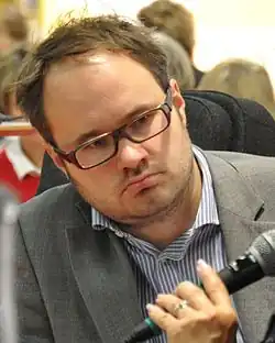 ![]() Tuomas Enbuske at the Helsinki Book Fair 2009. | |