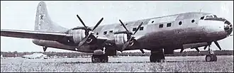 The Tupolev Tu-70 (Russian: Туполев Ту-70; NATO reporting name: Cart) was a Soviet passenger variant of the Tu-4 bomber, an unlicensed, reverse engineered copy of the Boeing B-29 Superfortress.[1] Designed immediately after the end of World War II, it used a number of components from Boeing B-29s that had made emergency landings in the Soviet Union after bombing Japan.[2] It had the first pressurized fuselage in the Soviet Union and first flew on 27 November 1946.[3] The aircraft was successfully tested, recommended for serial production, but ultimately not produced because of more pressing military orders and because Aeroflot had no requirement for such an aircraft. A military cargo aircraft version was the Tupolev Tu-75.