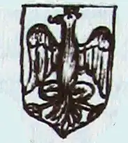Composed of a silver shield with a black eagle, with a golden crown. The motto reads "la virtù può accompagnarsi alla buona fortuna" (Virtue will bring good fortune).
