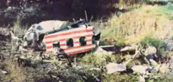 The impact shattered the aircraft wreckage over an area of 2 kilometres (1.2 mi). After hearing the explosion, nearby residents climbed to the top of the hill for two hours. Military personnel were dispatched to the area and were already on the scene. They found pieces of the aircraft on fire and extinguished them by throwing sand atop. One of the wings was found on top of the hill, while the engines were located at the bottom. A generator was used to light up the site at night. To prevent the looting of items, officials closed the area to civilians, despite which thousands of people went up the hill and were able to see the wreckage and bodies after midnight. The first flight recorder was found the day after the accident.[11] The flight data recorder was found on 22 September.[12] In 2009, some remains of the plane were still found at the crash site.[8]