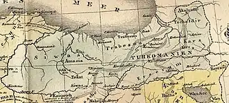 "Turkoman" entered into the usage of the Western world through the Byzantines in the 12th century.[17] By the beginning of 13th century, it became an endonym among Oghuz Turks themselves.[18]