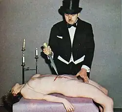 The society used the Cosmic egg as one of its main symbols, the serpent symbolizing Satan and being a masculine/phallic symbol, and the egg symbolizing the divine femininity, and together they symbolized eternal wisdom and life.[15]