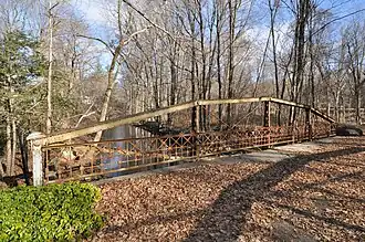The Turn-of-River Bridge, also known as Old North Stamford Road Bridge, is a single-span lenticular pony truss bridge built by the Berlin Iron Bridge Company in 1892. It was listed on the National Register of Historic Places in 1987.[1] It formerly brought the Old Stamford Road across the Rippowam River, but is now open only to pedestrian traffic, as the road ends shortly before the bridge.