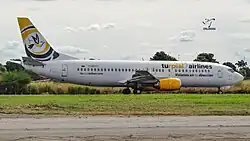 Turpial Airlines C.A. is a Venezuelan airline that has its hub at Arturo Michelena International Airport in Valencia, Venezuela. This airline has a fleet of 3 Boeing 737-400 authorized to operate regular and non-regular flights of passengers, cargo, and mail within the nation and internationally.