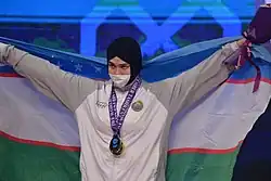 Tursunoy Jabborova (Uzbek Cyrillic: Турсуной Жабборова, born 4 March 2002)[1] is an Uzbekistani weightlifter. She won the silver medal in the women's 87 kg event at the 2021 World Weightlifting Championships held in Tashkent, Uzbekistan, and the bronze medal at the 2022 edition held in Bogotá, Colombia.[2][3] She is also a three-time medalist, including two gold medals, at the Junior World Weightlifting Championships. Jabborova represented Uzbekistan at the 2024 Summer Olympics in Paris, France.