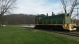 The Turtle Creek Industrial Railroad traces its origins back to 1886, when George Westinghouse chartered what was then called the Turtle Creek Valley Railroad with the hopes of exploiting the natural gas fields in Murrysville. At its westernmost point, the line began in East Pittsburgh where it dovetailed into Andrew Carnegie's Union Railroad and then ran eastward along the right bank of Turtle Creek to a junction near SZ tower.[4] In Trafford, it intersected the main line of the Pennsylvania Railroad before proceeding farther up the Turtle Creek Valley to Murrysville.[5] Service on the line began to Murrysville in 1891 and was extended to Export the following year.[6] A branch along Lyons Run was built in 1892[7] or 1893,[8] which ran 3.86 miles (6.21 km) from Saunders Station to Pleasant Valley.[9] In 1917 the primary line was extended eastward from Export to the mines in Slickville.[10]