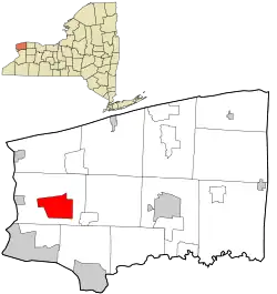![]() Location of Tuscarora Reservation in red, within Niagara County, New York | |