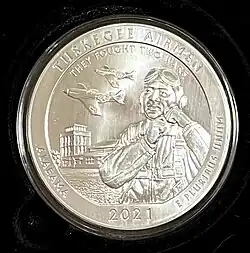 In January 2021, the Tuskegee Airmen National Historical Site was depicted on the 56th and final quarter in the America the Beautiful Quarters series.