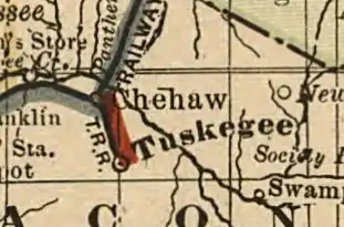 The Tuskegee Railroad was a 5 and 1/2 mile long railroad that connected Tuskegee, Alabama to the Montgomery and West Point Railroad at the nearby village of Chehaw. First constructed in 1860 by the Tuskegee Rail Road Company, it was subsequently destroyed in the American Civil War and then sold to E. T. Varner & Company, which rebuilt it and reincorporated it as the Tuskegee Railroad Company in 1872. Again incorporated in 1902 as the Tuskegee Railroad, one of the railroad's primary purposes in the early 20th century was to connect the Tuskegee Institute to other railroad lines.[1]