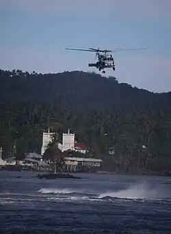 In response to this disaster, National Oceanic and Atmospheric Administration (NOAA) dispatched an assessment team to survey the damage to the reefs.[26] Apart from the cable way which was severely damaged and went permanently out of commission, the TV tower at Utulei, one of the three TV channels, was completely damaged by Val, resulting in its cannibalization to maintain the two remaining channels. The Fagalele Boys School, which was one of the oldest European style buildings built in the middle of the 19th century on the west coast of the island in Leone village, was also destroyed by Hurricane Val.[27]