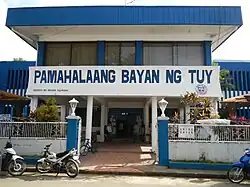Tuy (Tagalog pronunciation: [tuˈi]), officially the Municipality of Tuy (Tagalog: Bayan ng Tuy), is a municipality in the province of Batangas, Philippines. According to the 2020 census, it has a population of 46,519 people.[5]