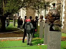 The sculptures were removed from their position on Worcester Boulevard to facilitate the post earthquake restoration of the Engineering block of the Arts Centre of Christchurch. Following the restoration, it was envisaged that they would return. Instead, the busts were installed in January 2023 at the University of Canterbury campus in the suburb of Ilam as part of the university's 150th anniversary.[4] It is envisaged that the Twelve Local Heroes will remain at the university for two years.[5]