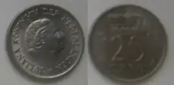 From 1948 onwards, the coin was minted using nickel. Its last design originated from 1980, with Queen Beatrix as the monarch on its obverse.