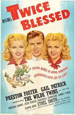 Twice Blessed is a 1945 American comedy film directed by Harry Beaumont and starring Preston Foster, Gail Patrick, and Lee and Lyn Wilde. It was an MGM vehicle for the Wilde twins, who were first introduced in Andy Hardy's Blonde Trouble (1944).