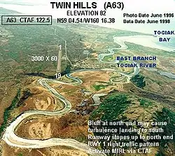 Twin Hills Airport (IATA: TWA, FAA LID: A63) is a state-owned, public-use airport serving Twin Hills,[1] in the Dillingham Census Area of the U.S. state of Alaska. Scheduled airline service to Dillingham Airport is provided by Peninsula Airways (PenAir).[3]