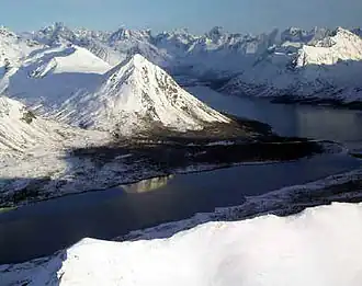 Twin Lakes is a complex of two large lakes in Lake Clark National Park in the U.S. state of Alaska,[1] near the northeast corner of Lake and Peninsula Borough. It contains a 6-mile-long (9.7 km) upper lake and a smaller 4-mile-long (6.4 km) lower lake, joined by a short connecting stream. The lakes outflow westward into the Chilikadrotna River[2] (and eventually into the Mulchatna and Nushagak Rivers and Nushagak Bay). It is quite remote and unpopulated, except in the late summer as it is a popular hunting spot.