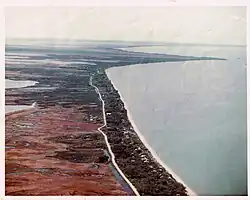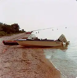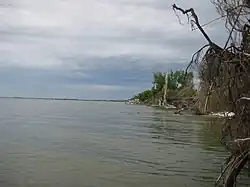 Twin Lakes Beach was once a wide beach, wide enough in fact that cars and off-road vehicles were able to drive on it prompting the Rural Municipality of St. Laurent to pass a by-law in 1987 prohibiting the operation of off-road vehicle on the beaches within the municipality from May 1 to October 15.[8] In more recent years the width of the beach has been reduced in many areas due to a number of factors. According to some residents they have lost as much as 100 feet (30 m) of beach and property combined.[9] One factor is that Manitoba is currently experiencing a wet cycle which is causing lakes all across the province to experience high levels, such as the nearby Shoal Lakes which have now become a single lake. There is also the fact that many cottagers have not allowed the natural vegetation to grow which traps the sand. The regulation of Lake Manitoba may also be a factor. The lake is to be regulated between 810.5–812.5 ft (247.0–247.7 m) above sea level.[10] This involves holding up water at the Fairford Dam in times of low water. While this may benefit some industries and cottagers, in places like Twin Lakes Beach it does not allow the sand to build up dunes around vegetation as it would in a drought. Also, in times of high water on the Assiniboine River, the Portage Diversion is opened normally diverting up to 25,000 cu ft/s (710 m3/s), which is the designed channel capacity, of water into the lake that would otherwise be directed towards Winnipeg and the Red River. This has in the past resulted in an increase in lake levels in which the most evident case was during the 1976 flood on the Assiniboine River (1,420,000 acre-feet (1.75 km3) of water diverted, 1.22 feet (0.37 m) direct rise in water levels).[10] This was passed in terms of volume of water in 2011 as the Portage Diversion took on up to 34,804 cu ft/s (985.5 m3/s) in a desperate attempt to prevent major flooding downstream. Also in 2011, the duration of use of the Portage Diversion was longer than ever before in as it was in operation from April 6 to August 5 running for a total of 122 days due to continued precipitation in the spring and into the summer.[11][12][13]