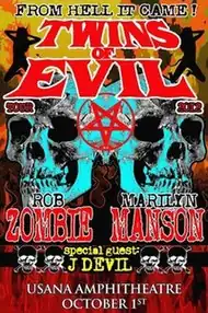 The Twins of Evil Tour was the first double-bill concert tour co-headlined by American rock bands Rob Zombie and Marilyn Manson. Launched in support of each band's respective full-length studio LPs, 2010's Hellbilly Deluxe 2 and 2012's Born Villain, the tour visited a mixture of amphitheaters, indoor arenas and outdoor stadiums from September 28, 2012, through December 12, 2012. There were also shows given at smaller, more intimate venues, such as New York City’s Hammerstein Ballroom. It was conceived as a follow-up tour for Zombie's Hellbilly Deluxe 2 World Tour. At the time, Marilyn Manson was engaged in their worldwide Hey Cruel World... Tour, thus Twins of Evil became a 'tour within a tour' for the band. It consisted of two legs, with dates in the United States and Europe.